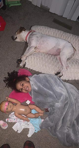 Despite the fact that she was 10 years old and healing from her surgeries, the sweetest adopter came along. Audrey Arroyo adopted Anastasia on 2/6/21 and Anastasia gained two little human sisters, too. Audrey says she is doing well and is so loved. She says she is so special and she is thankful for her. She also added that she is so good with her two young daughters and they adore her and spoil her.